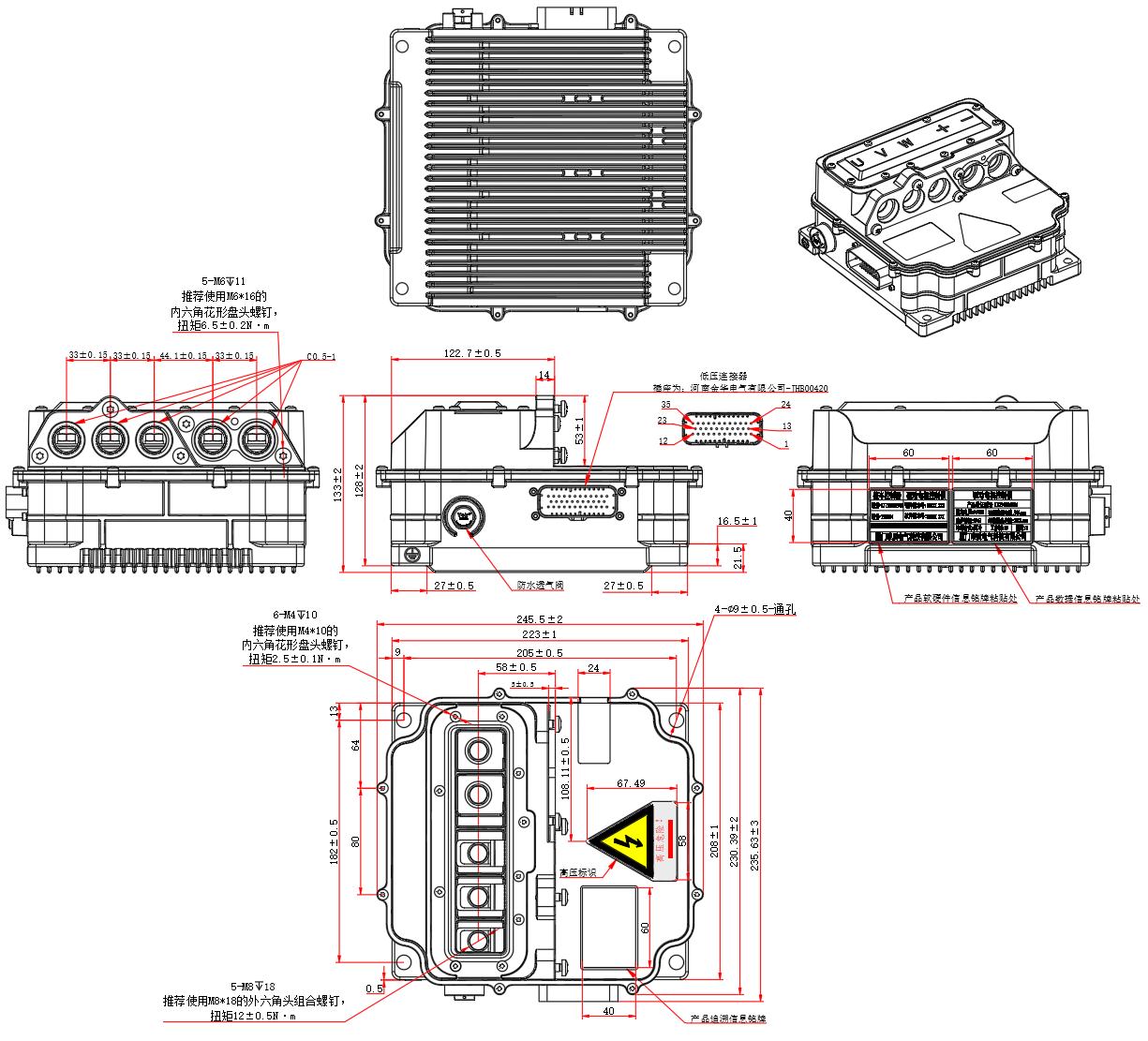 يُستخدم هذا المنتج في مجالات متنوعة مثل المركبات الصغيرة، والمركبات ثلاثية العجلات، ومركبات البناء. يتميز بتصميم لفائف سلكية مسطحة، مما يجمع بين مزايا النظام خفيف الوزن وكثافة الطاقة العالية. يدعم تشخيص UDS، والتحديث عبر الهواء (OTA)، واتصال CAN، ويحتوي على آلية حماية متكاملة ومستوى حماية عالٍ IP67، مما يوفر حلاً فعالاً وموثوقاً لقيادة المركبات الكهربائية الصغيرة. يتوافق جهاز التحكم مع محرك متزامن بمغناطيس دائم، ونوع مشفر كشف موضع دوار المحرك هو مشفر ABZ.