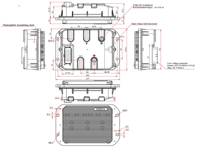 نطاق جهد واسع: يتراوح جهد التشغيل بين 35 و85 فولت تيار مستمر، مما يغطي تمامًا سلسلة منصات البطاريات 48 و60 و72 فولت. منتج واحد يلبي احتياجات تطوير العديد من طرازات المركبات.